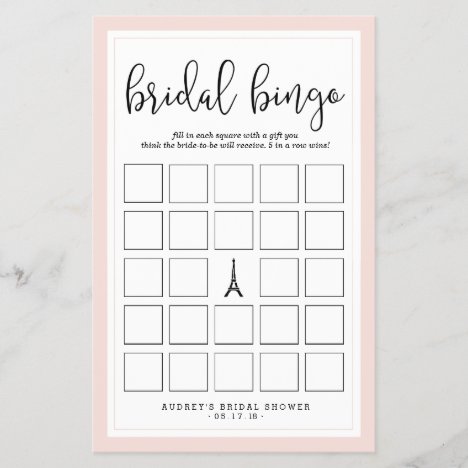 Paris Romance Bridal Shower Bingo Game