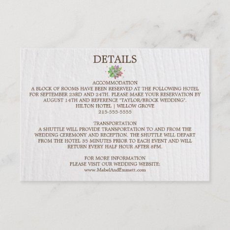 Boho Rustic Mint Floral Succulent Wedding Details Enclosure Card