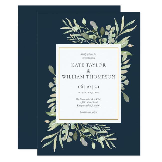 Soft Spring Leaves Silver Sage Wedding Invitation #watercolour #botanical #green #and #white #Invitation